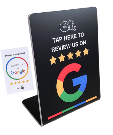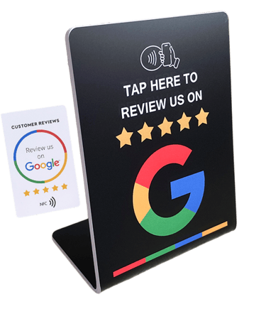 Or... to really step up the reviews, our optional Google Review "Tap" Cards and Stands will take things to the next level: